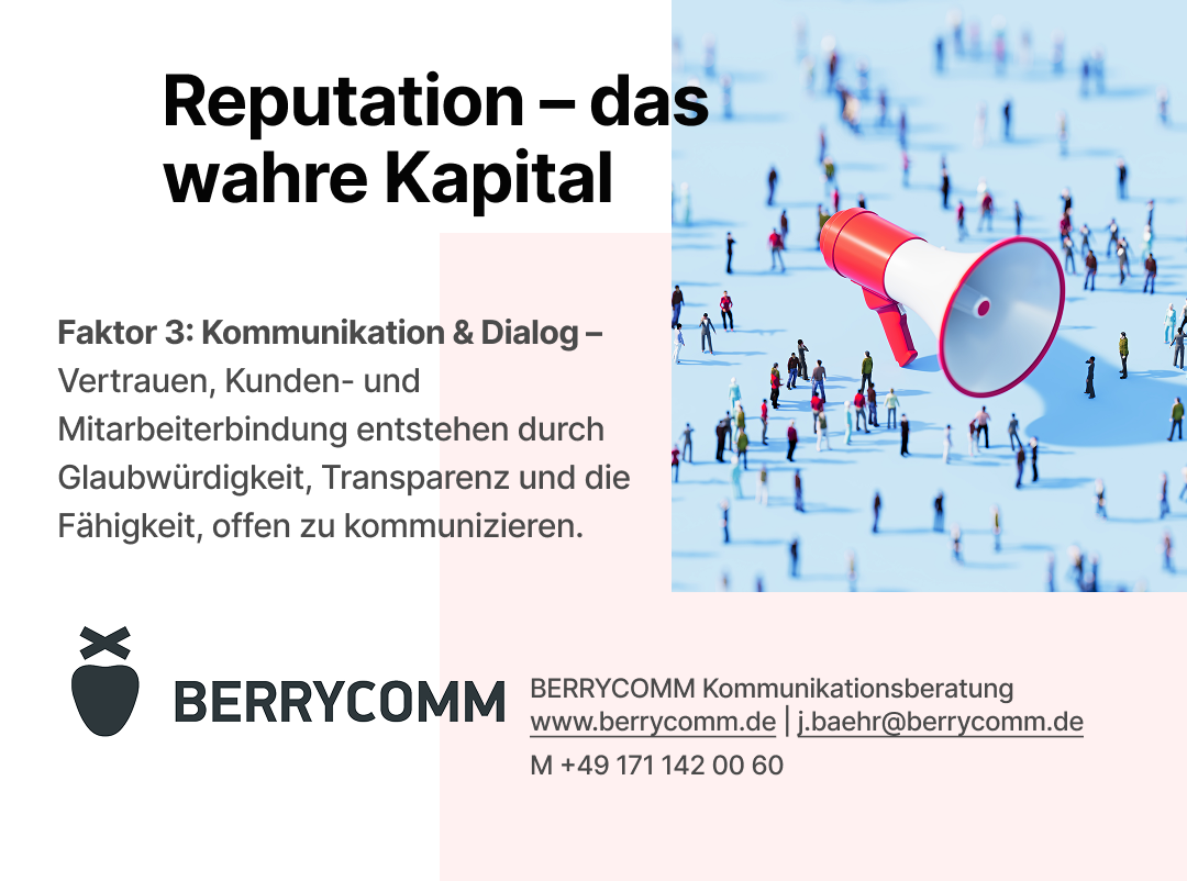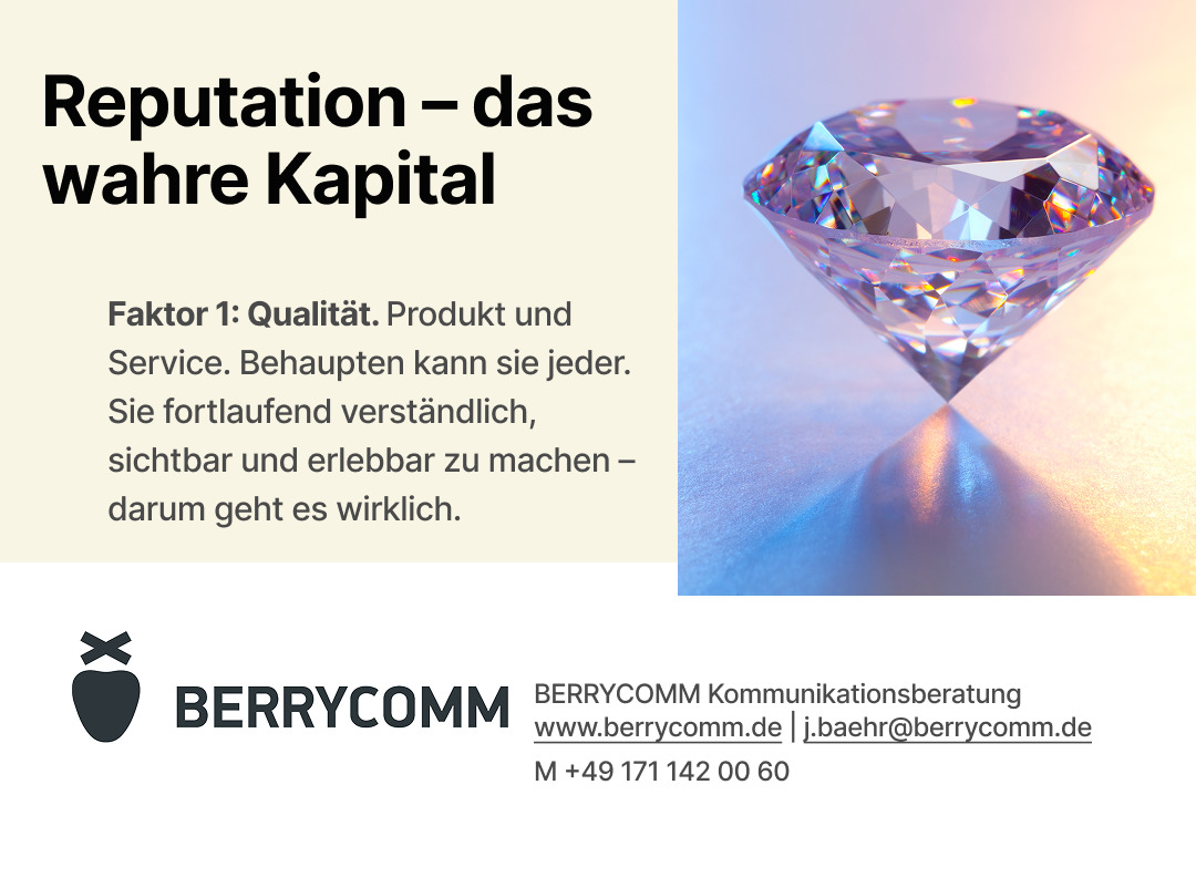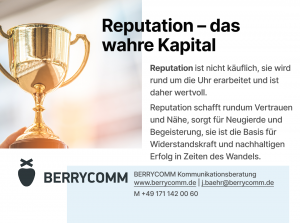 Kurz gesagt: Reputation ist der unsichtbare Wert, der entsprechend behütet und gepflegt über Wachstum, Widerstandskraft und nachhaltigen Erfolg mitbestimmt.