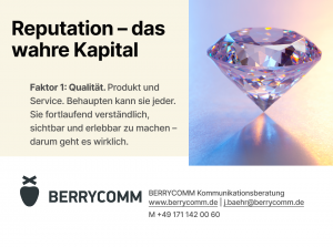 Reputation ist kein „weicher“ Faktor, sondern muss als handfestes Kapital betrachtet werden. Sie entscheidet über Vertrauen, Nähe, Begeisterung und Resilienz – und damit über den langfristigen Erfolg. Während das Image schnell wechselt, bleibt die Reputation i.d.R. bestehen.
