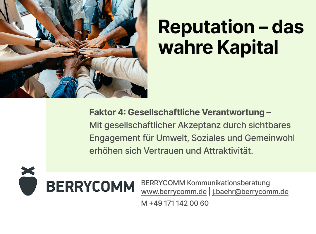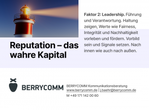 Diese Faktoren greifen ineinander: Nur wer sie ernsthaft lebt, wird als umfassend glaubwürdig wahrgenommen – und baut eine Reputation auf, die auch in Krisenzeiten trägt.